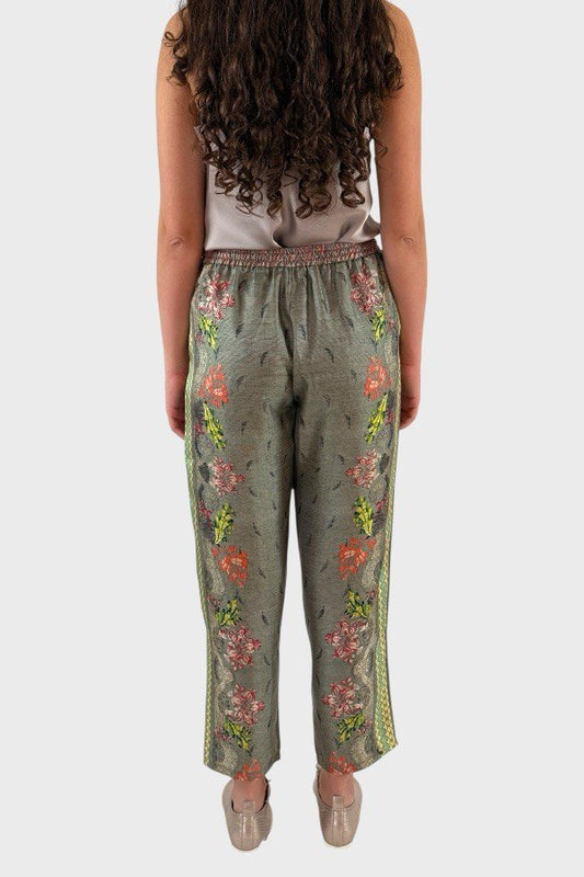 Pantaloni in seta fantasia floreale
