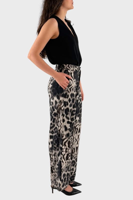 Pantaloni in seta fantasia animalier